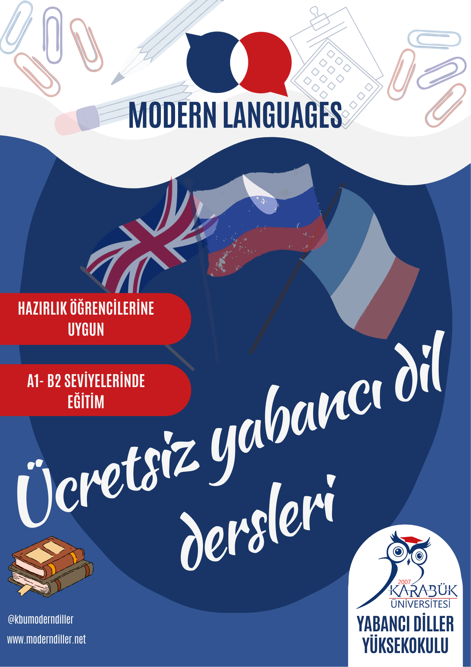 - Dersler Yabancı Diller Yüksekokulu binasında gerçekleştirilecek olup B1 ve B2 seviyelerine ağırlık verilecektir.